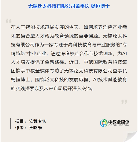 全媒體總裁專訪 | ?無(wú)錫泛太科技有限公司董事長(zhǎng)楊恒博士:以AI技術(shù)賦能高科技教育,推動(dòng)產(chǎn)教融合高質(zhì)量發(fā)展