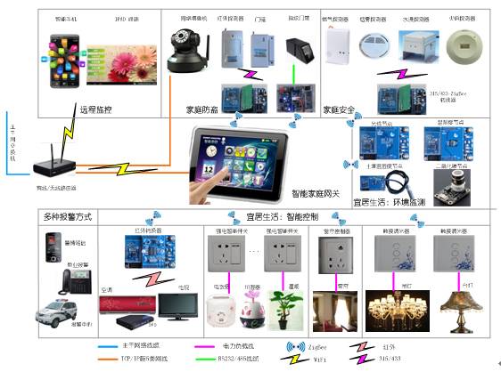 智能家居生活館主要由感知設(shè)備、安防設(shè)備、控制設(shè)備、監(jiān)控設(shè)備、家庭網(wǎng)關(guān)、智能終端、家居裝修材料等組成。