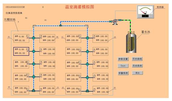 系統(tǒng)軟件主要是大田滴灌自動(dòng)控制系統(tǒng)軟件,它可采用組態(tài)或C#兩種軟件體系實(shí)現(xiàn),具有良好的人機(jī)交互界面,如圖所示。