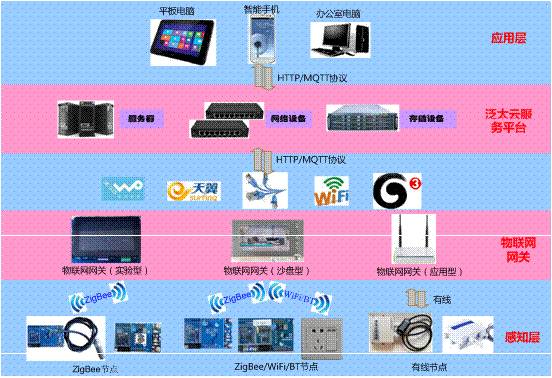 智慧教室設(shè)備能夠體現(xiàn)物聯(lián)網(wǎng)的三個(gè)層次(應(yīng)用層、網(wǎng)絡(luò)層、感知層),運(yùn)用傳感器、射頻識(shí)別(RFID)等技術(shù),使信息傳感設(shè)備實(shí)時(shí)感知任何需要的信息,按照約定的協(xié)議,通過(guò)可能的網(wǎng)絡(luò)(如基于WIFI的無(wú)線局域網(wǎng)、移動(dòng)通信、電信網(wǎng)等)接入方式,把任何物品與互聯(lián)網(wǎng)相連接,進(jìn)行信息交換和通信,實(shí)現(xiàn)物與物、物與人的泛在鏈接,實(shí)現(xiàn)對(duì)物品的智慧化識(shí)別、跟蹤、監(jiān)控和管理。 同時(shí),智慧教室還能滿足學(xué)校物聯(lián)網(wǎng)技術(shù)專業(yè)開(kāi)設(shè)的物聯(lián)網(wǎng)導(dǎo)論、傳感器原理及應(yīng)用、無(wú)線傳感器網(wǎng)絡(luò)及應(yīng)用、RFID技術(shù)及應(yīng)用、物聯(lián)網(wǎng)工程及應(yīng)用、物聯(lián)網(wǎng)標(biāo)準(zhǔn)與中間件技術(shù)、物聯(lián)網(wǎng)應(yīng)用系統(tǒng)設(shè)計(jì)等課程的實(shí)踐實(shí)訓(xùn)教學(xué)需要,并為學(xué)生或教師的物聯(lián)網(wǎng)技術(shù)應(yīng)用項(xiàng)目開(kāi)發(fā)提供平臺(tái)。