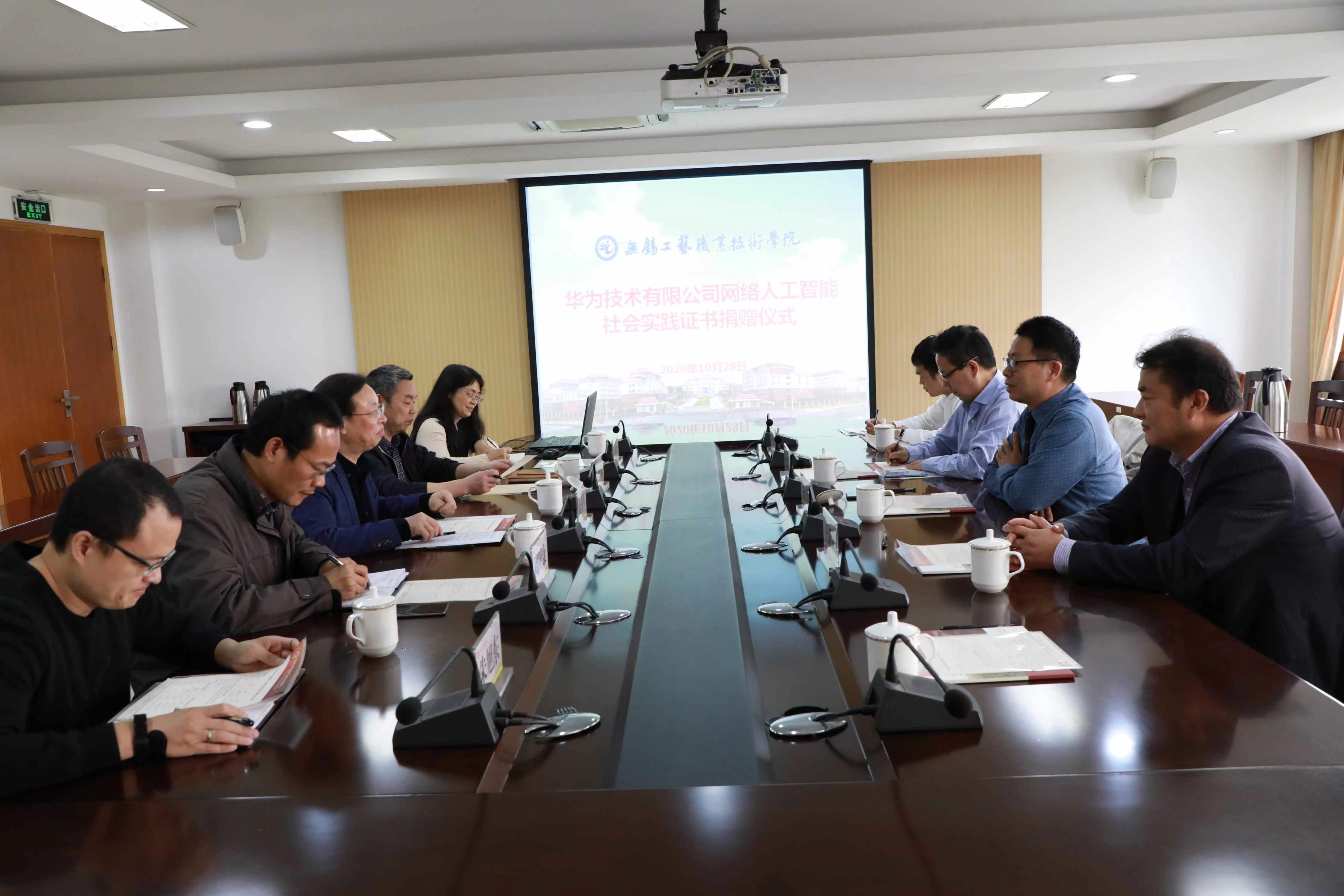 2020年10月29日,華為技術(shù)有限公司網(wǎng)絡(luò)人工智能社會(huì)實(shí)踐證書捐贈(zèng)儀式在無錫工藝職業(yè)技術(shù)學(xué)院會(huì)議室進(jìn)行。