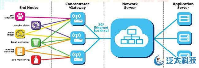 它使用線性調(diào)頻擴(kuò)頻調(diào)制技術(shù),即保持了像FSK(頻移鍵控)調(diào)制相同的低功耗特性,又明顯地增加了通信距離,同時(shí)提高了網(wǎng)絡(luò)效率并消除了干擾,即不同擴(kuò)頻序列的終端即使使用相同的頻率同時(shí)發(fā)送也不會(huì)相互干擾,因此在此基礎(chǔ)上研發(fā)的集中器/ 網(wǎng)關(guān)(Concentrator/Gateway)能夠并行接收并處理多個(gè)節(jié)點(diǎn)的數(shù)據(jù),大大擴(kuò)展了系統(tǒng)容量。