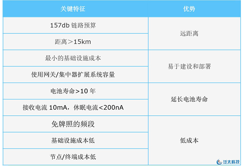 表:LoRa關(guān)鍵特性和優(yōu)勢(shì)
