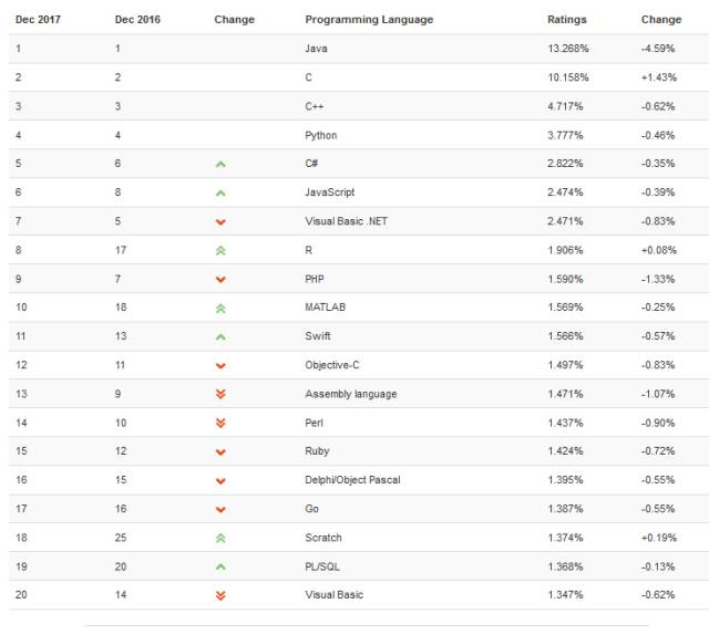從最新的 TIOBE 12 月編程語言排行榜來看,排名Top 5 中 Python 依舊堅挺。