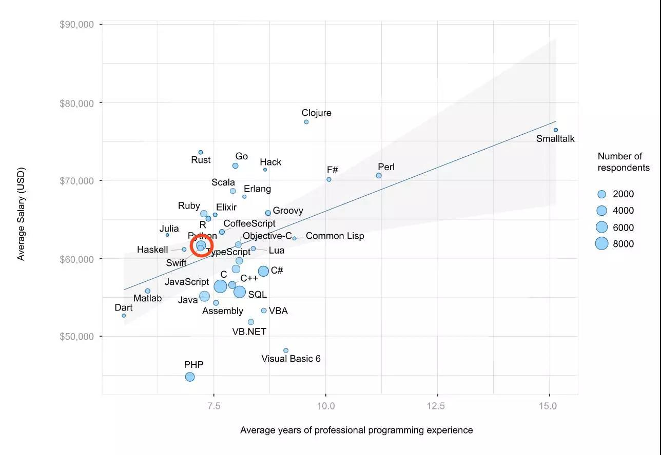 Python 這門語言與其他語言比起來的優(yōu)勢還是很明顯的,從薪水圖來看,Python 的工作經(jīng)驗(yàn)要求小于其他主流編程語言,并且平均薪資還是高于 Java / C / PHP /JS 這些主流語言的。