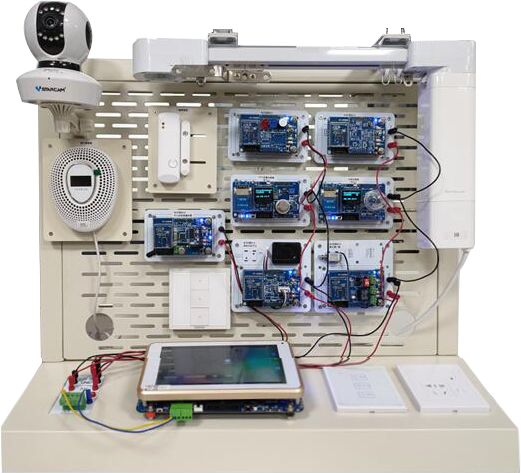 同時(shí),無(wú)錫泛太順應(yīng)物聯(lián)網(wǎng)時(shí)代的發(fā)展,將智能家居工程師的崗位能力要求同職業(yè)教育的教學(xué)實(shí)訓(xùn)需求相結(jié)合,設(shè)計(jì)出一款涵蓋物聯(lián)網(wǎng)技術(shù)原理、無(wú)線傳感網(wǎng)應(yīng)用、智能家居設(shè)備控制、網(wǎng)絡(luò)綜合布線、智能設(shè)備安裝等模塊,綜合了傳感器數(shù)據(jù)采集及處理、無(wú)線通信、自動(dòng)控制等關(guān)鍵技術(shù)的全方位一體化的物聯(lián)網(wǎng)及智能家居知識(shí)體系學(xué)習(xí)與實(shí)踐的平臺(tái)——智能家居多功能實(shí)訓(xùn)臺(tái)。