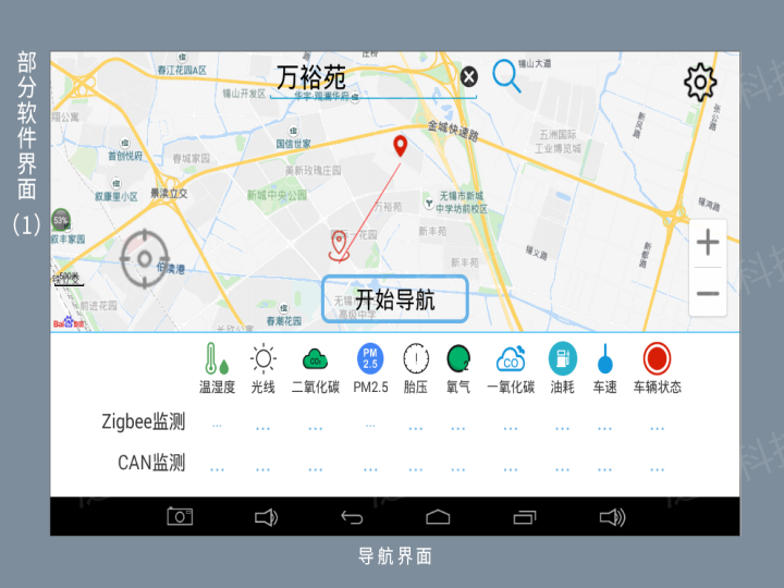 智能車(chē)載控制實(shí)訓(xùn)臺(tái)(SeaIOT-L-IoV-01),是基于物聯(lián)網(wǎng)傳感器技術(shù)在智能汽車(chē)電子行業(yè)應(yīng)用而設(shè)計(jì)的,集成全球衛(wèi)星定位系統(tǒng)(GPS)、第四代移動(dòng)通信系統(tǒng)(4G)、無(wú)線傳感器網(wǎng)絡(luò)(ZigBee)等通訊網(wǎng)絡(luò),配合Android高性能嵌入式平臺(tái)、電子控制器(CAN控制器)、各種傳感器(溫濕度、壓力、一氧化碳、二氧化碳、光線、PM2.5、攝像頭等),實(shí)時(shí)感知汽車(chē)行駛方位、車(chē)速油耗、四輪胎壓、環(huán)境參數(shù)等,將車(chē)載數(shù)據(jù)傳入本地終端和遠(yuǎn)程平臺(tái),實(shí)現(xiàn)車(chē)輛系統(tǒng)的虛擬儀表車(chē)載數(shù)據(jù)顯示、車(chē)輛定位、行車(chē)記錄、倒車(chē)影像、障礙物自動(dòng)避障等功能。