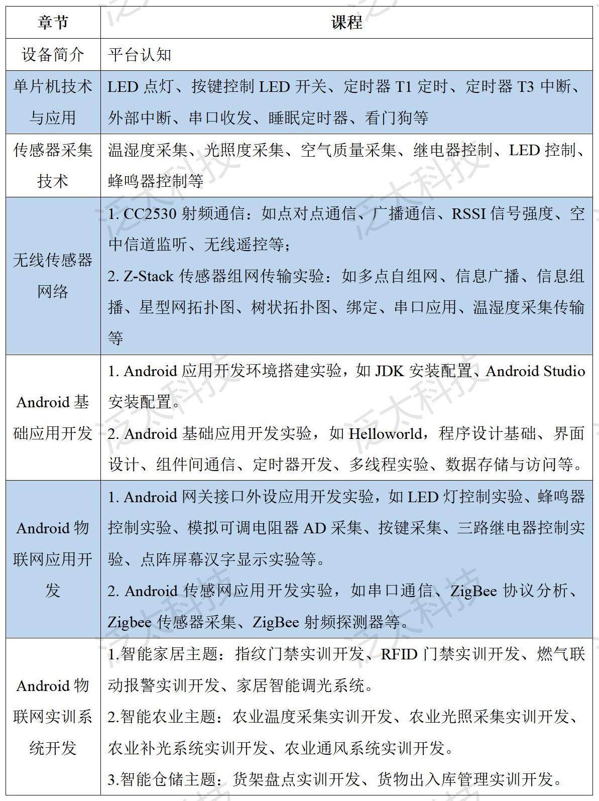 物聯(lián)網(wǎng)應(yīng)用開發(fā)實訓(xùn)臺(SeaIOT-ED-DP-06),以家居安防、智能農(nóng)業(yè)、智能貨架為案例,使學(xué)生了解和掌握其硬件構(gòu)成、業(yè)務(wù)原理及應(yīng)用開發(fā)。