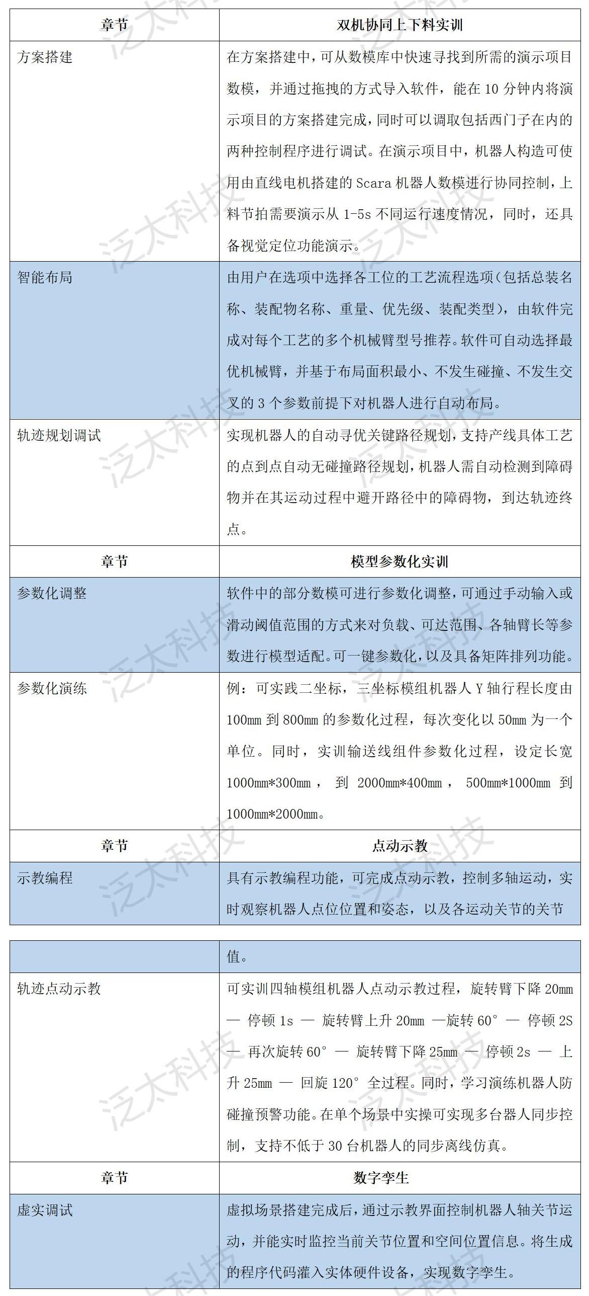 本套系統(tǒng)主要由機器人單元、控制系統(tǒng)單元、視覺檢測定位單元、供料單元、傳輸單元和仿真部署6大模塊組成。系統(tǒng)集方案搭建、虛擬調(diào)試、數(shù)字孿生、編程應用、電氣控制和視覺檢測等功能為一體,各個功能可以相互串聯(lián),從而實現(xiàn)從軟件孿生到硬件控制的全棧式實踐學習。