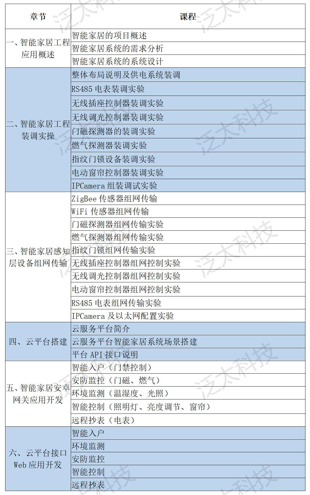 實(shí)訓(xùn)臺(tái)涵蓋嵌入式接口技術(shù)、ZigBee自組網(wǎng)技術(shù)、WiFi無線通信技術(shù)、生物識(shí)別技術(shù)、網(wǎng)絡(luò)傳輸技術(shù)、應(yīng)用軟件開發(fā)技術(shù)的知識(shí)點(diǎn)及智能家居行業(yè)應(yīng)用知識(shí)。平臺(tái)采用Cortex-A9異構(gòu)網(wǎng)關(guān)作為家庭控制終端,集成溫濕度、光照度、空氣質(zhì)量、指紋識(shí)別等無線傳感器,燃?xì)?、門磁等無線安防探測器,繼電器、窗簾電機(jī)、調(diào)光面板、強(qiáng)電插座等無線控制器,網(wǎng)絡(luò)攝像頭及電表等,實(shí)現(xiàn)家居環(huán)境監(jiān)測、安防監(jiān)控、智能入戶、家電控制、遠(yuǎn)程抄表、視頻監(jiān)控等功能。提供家居設(shè)備安裝調(diào)試、組網(wǎng)傳輸測試、云平臺(tái)家居場景搭建、智能家居APP應(yīng)用軟件開發(fā)、智能家居Web應(yīng)用軟件開發(fā)等完整的實(shí)訓(xùn)案例。